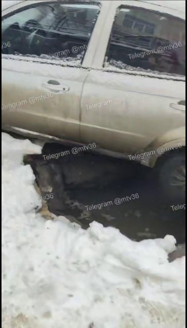 Автомобиль провалился под асфальт в центре Воронежа