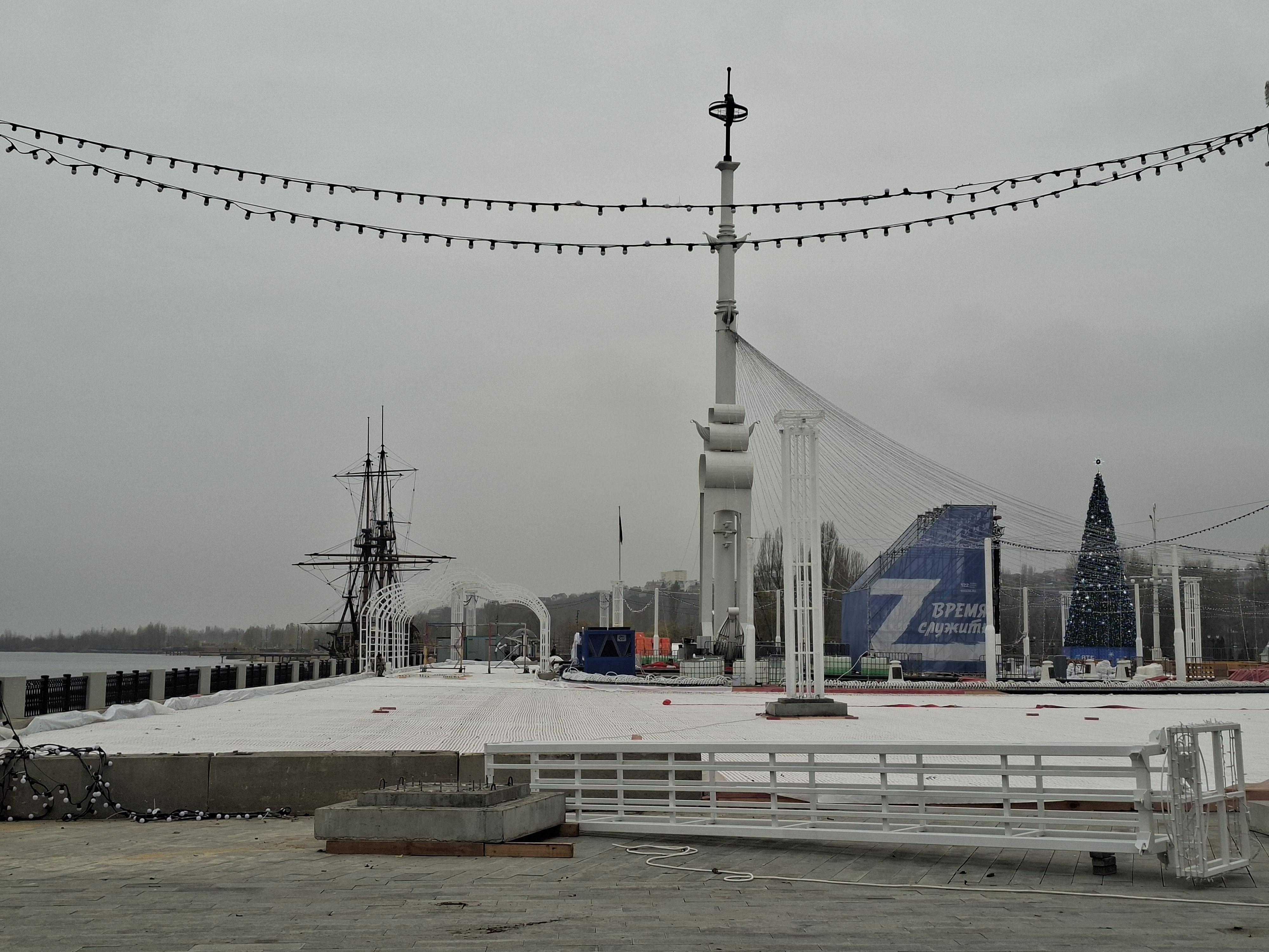 В мэрии Воронежа сообщили, что оформление главной праздничной площадки на Адмиралтейской площади близится к концу. Там уже установили 18-метровую елку и завершают подготовку катка.