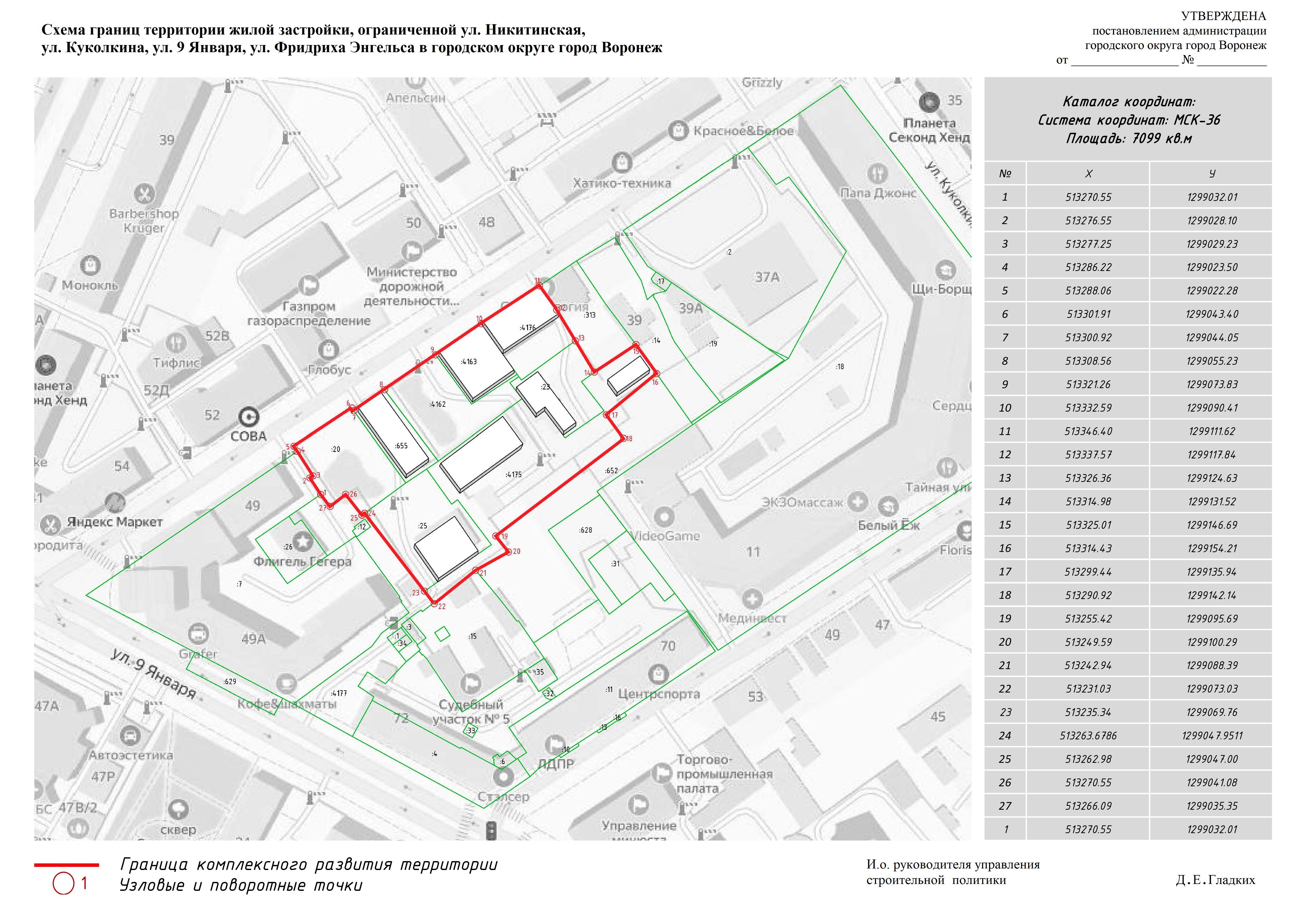 Мэр Сергей Петрин утвердил план комплексного развития жилой территории в квартале, ограниченном улицами Никитинской, Куколкина, 9 Января и Фридриха Энгельса. Соответствующее постановление опубликовано на сайте городской администрации. Общая площадь территории составляет 7099 квадратных метров, из них под застройку может быть отведено 80%. Планируемая общая площадь возводимых высотных зданий — 16 703,6 квадратных метра. Согласно документу, максимальная этажность новых домов, включая подземную парковку, не должна превышать восьми.
