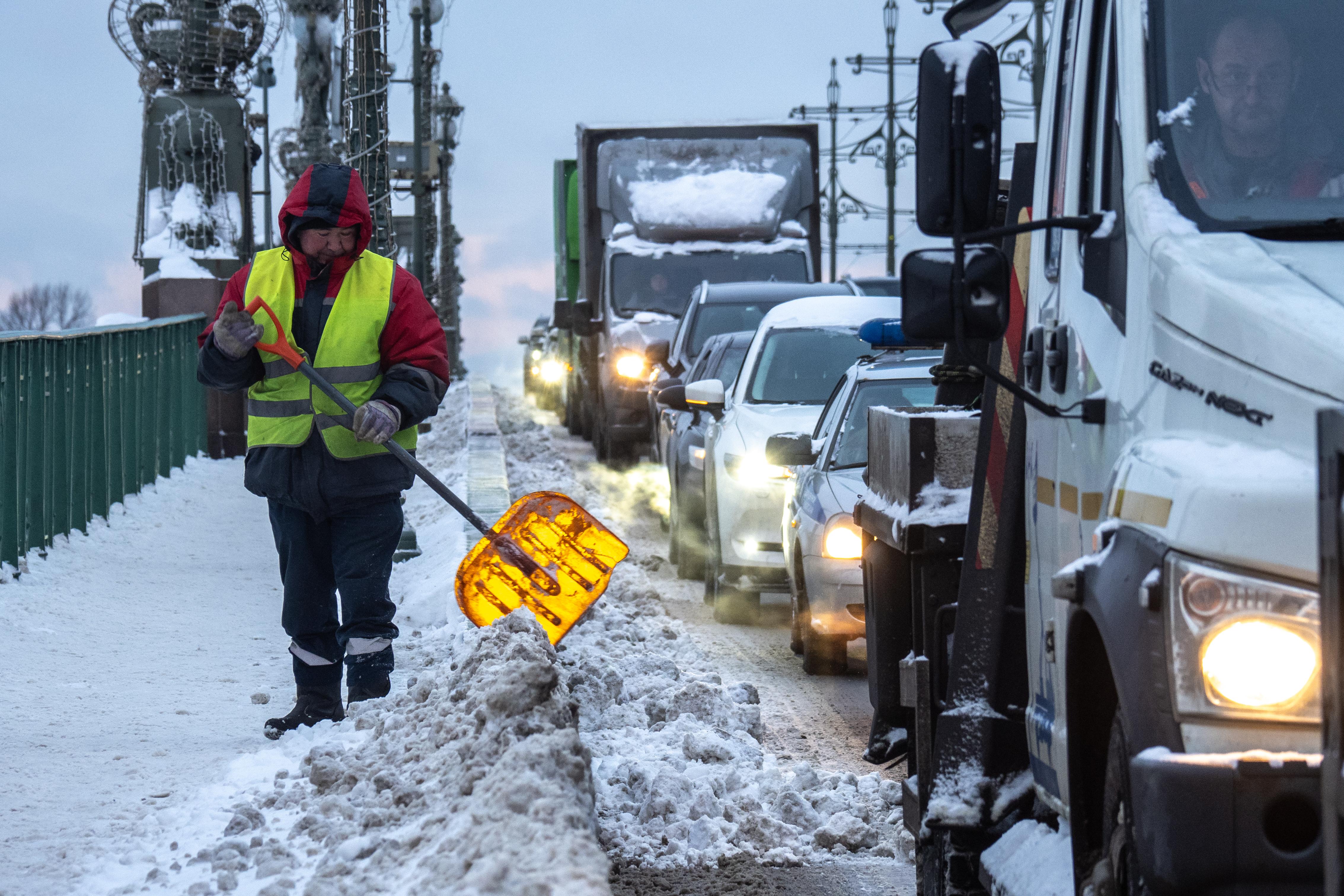 Пятикилометровая пробка на М-4 «Дон» образовалась из-за ремонта и снегопадов.