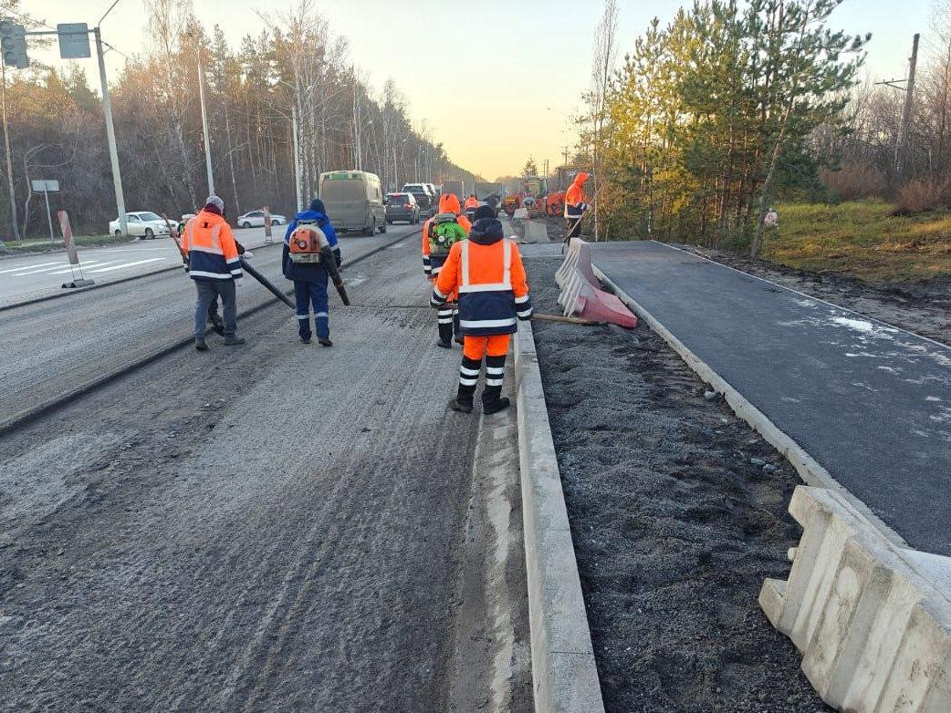 Одновременно проводятся работы по укреплению обочин и обустройству водоотвода. Чтобы повысить безопасность, проезжую часть отделили от объектов дорожного сервиса, а также упорядочили въезды и выезды. Для жителей асфальтируют подъездную дорогу со стороны гаражного кооператива.