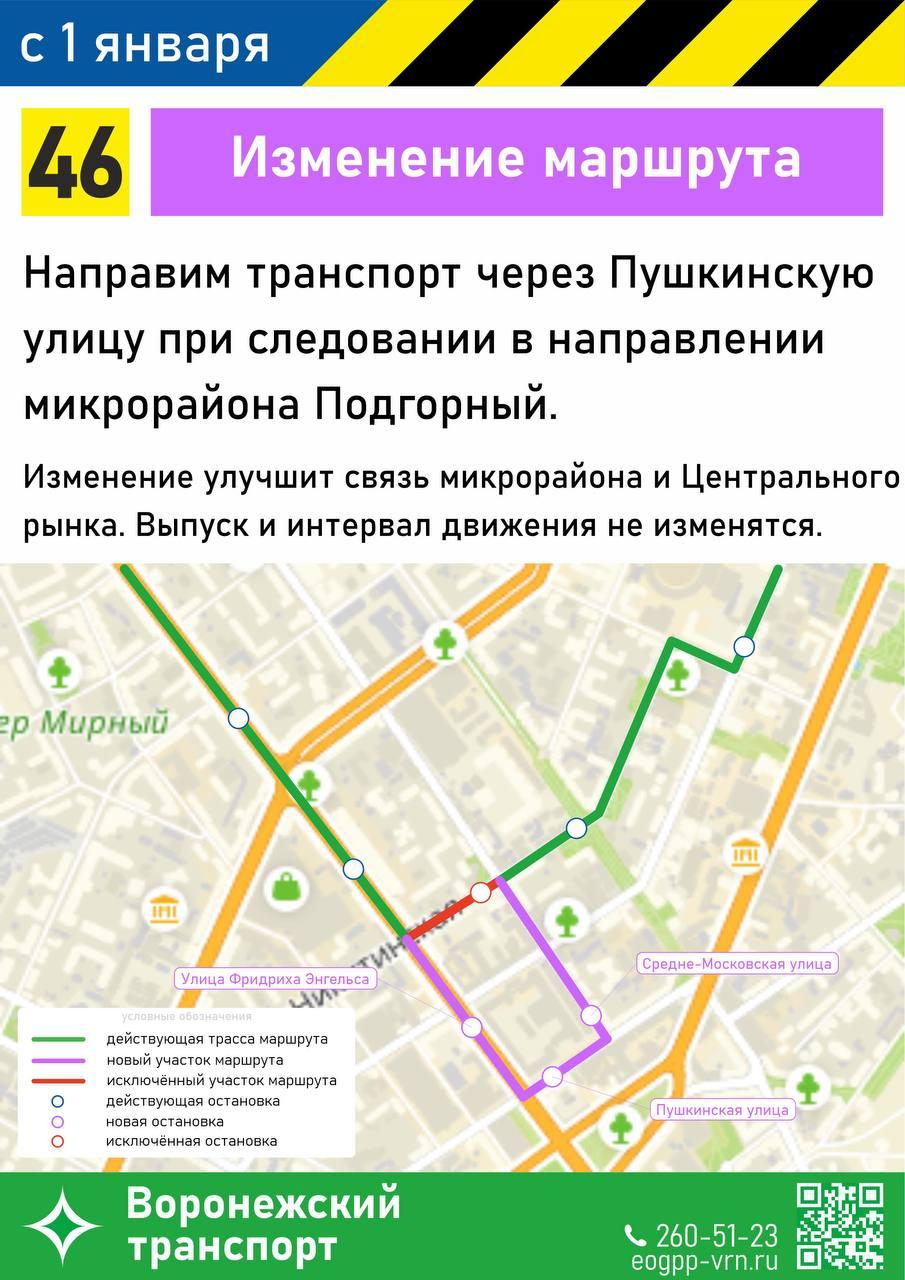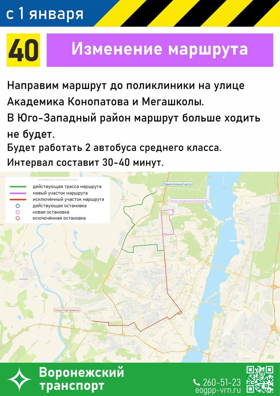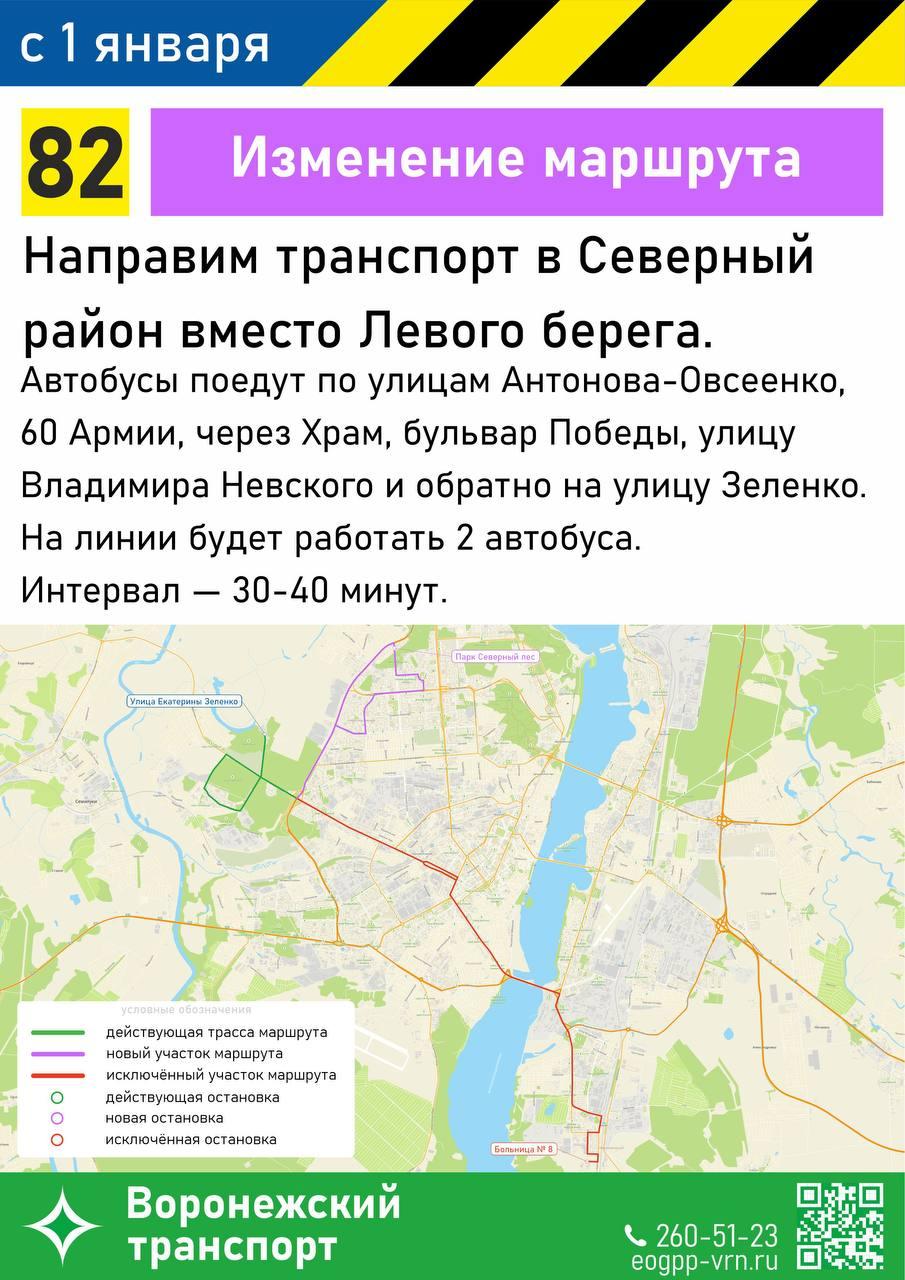 Администрация Воронежа объявила об изменениях в автобусном сообщении, которые вступят в силу с 1 января. Шестнадцать маршрутов подвергнутся корректировке: часть расширят, некоторые укорочат, а отдельные направления закроют.